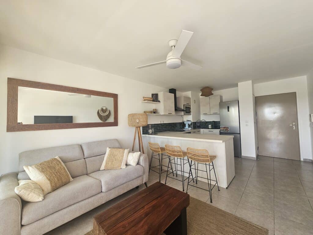 – Séjour avec cuisine ouverte équipée