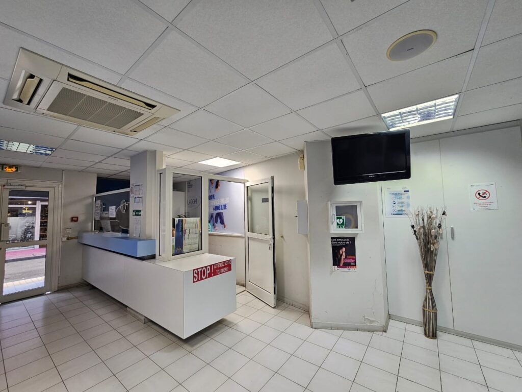 RDC :• Local commercial vitré 17 m² (loué 850 €)• Porche sécurisé + accueil + grande salle d’attente• 1 bureau• 1 sanitaire